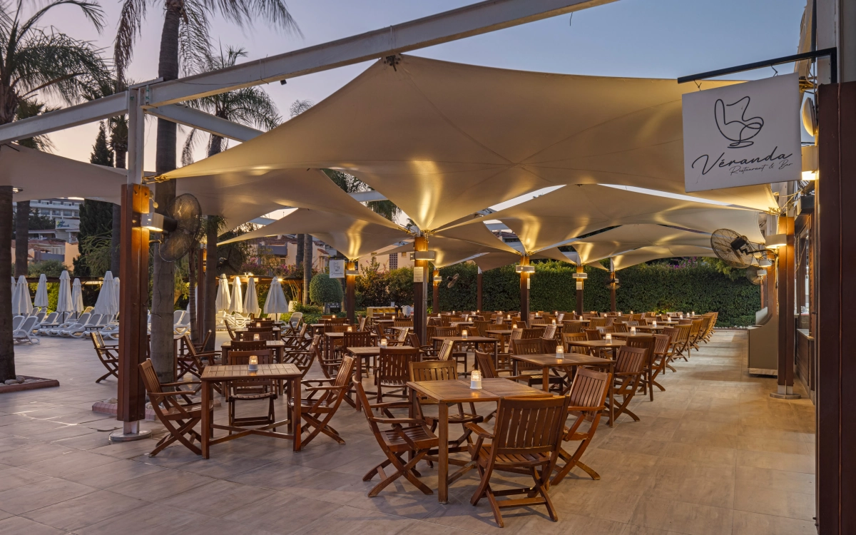 Veranda Restoran & Pool Bar'da yaz döneminde konseptimize dahil tüm içecekler 10.00-18.00 saatleri arasında misafirlerimize servis verilmektedir. Ayrıca, 12.30-15.00 saatleri A la Carte Snack servisi misafirlerimize sunulmaktadır.